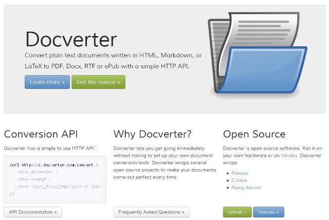 Docverter est une application open source qui combine de multiples outils en une seule et unique application JRuby et fonctionne comme un serveur de conversion de documents.